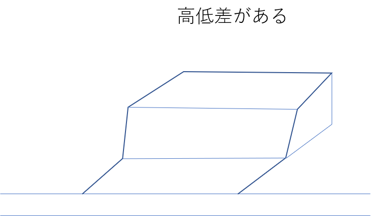 ○土地に高低差がある・・・土地の中心にあり、建築困難な場合は大幅な減価要因になる。